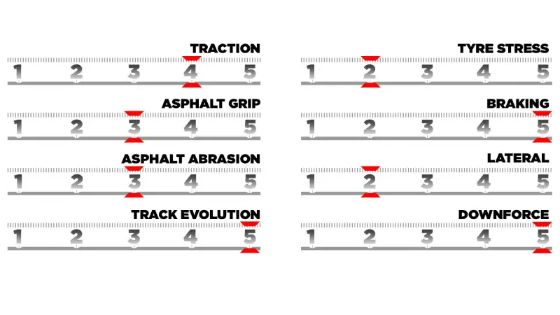 Para este fin de semana, Pirelli ha confirmado la misma gama que en 2024: C3 (duro), C4 (medio) y C5 (blando). Aunque existe el ultrablando C6, se descartó por riesgo de sobrecalentamiento en un asfalto que ya de por sí provoca una degradación elevada.