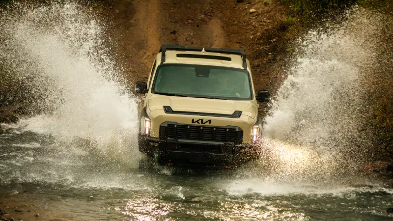 La Kia Tasman no es solo una camioneta: es la muestra de cómo la marca redefine lo que se espera de este tipo de vehículos. Su diseño exterior transmite potencia y confianza gracias a una parrilla frontal imponente, faros LED verticales y una silueta aventurera con barras de techo, ángulos de ataque y salida pensados para la acción.