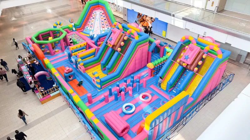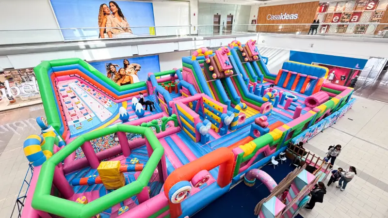 Ubicada en la Plaza de la Luna, esta atracción no es un inflable convencional. Se trata de un recorrido lúdico diseñado como un «universo de caramelos», lleno de colores vibrantes y referencias a dulces que estimulan la imaginación y el juego.