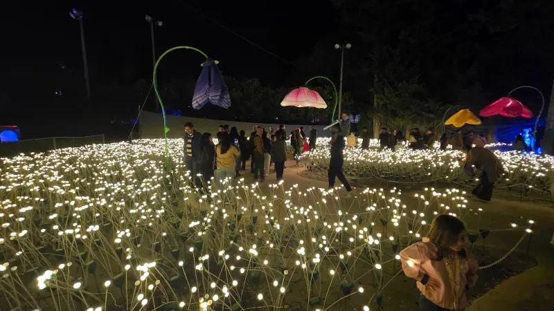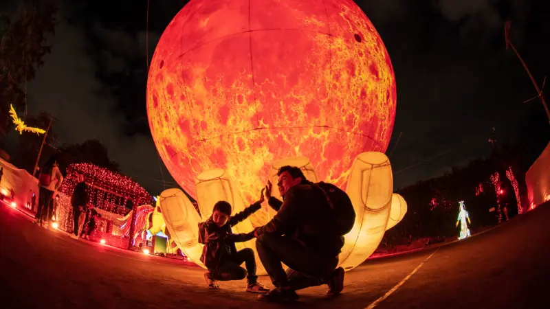 La experiencia invita a los visitantes a recorrer un kilómetro completo de escenarios inmersivos, donde la luz es protagonista. Entre los espacios más llamativos se encuentran: