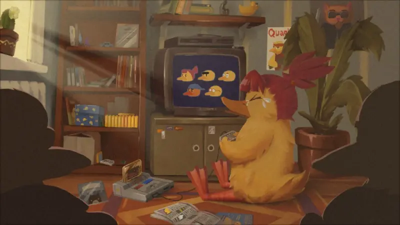 La premisa es tan absurda como encantadora: un grupo de patitos encuentra un misterioso cartucho «100 en 1» en una habitación que parece sacada directamente de los años 90. Al encenderlo, liberan a un espíritu maligno llamado D.U.C.K., quien secuestra a los patitos y los atrapa dentro del juego. La única forma de escapar es superar los 100 microjuegos que componen el cartucho. Si fallan, el espíritu cumplirá su maldición y los convertirá en personajes pixelados bidimensionales para siempre.