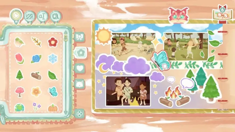 Pero el verdadero corazón del juego está en la personalización del álbum. Una vez que las imágenes están en su lugar, el jugador puede decorar libremente las páginas con patrones, colores, fuentes y estilos, dando rienda suelta a su creatividad sin presiones ni límites de tiempo.