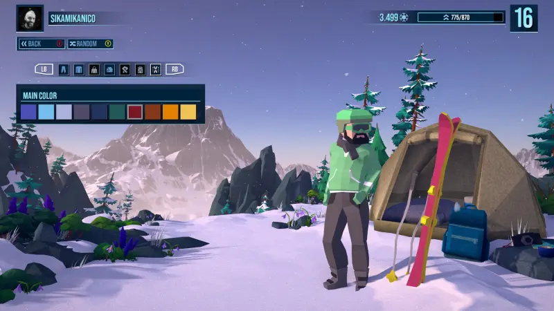 - Estética: El arte es minimalista pero hermoso. Los colores son vibrantes y el contraste entre la nieve blanca y los elementos del entorno (rocas grises, árboles verdes, tiendas de campaña naranjas) asegura que el camino sea siempre legible.