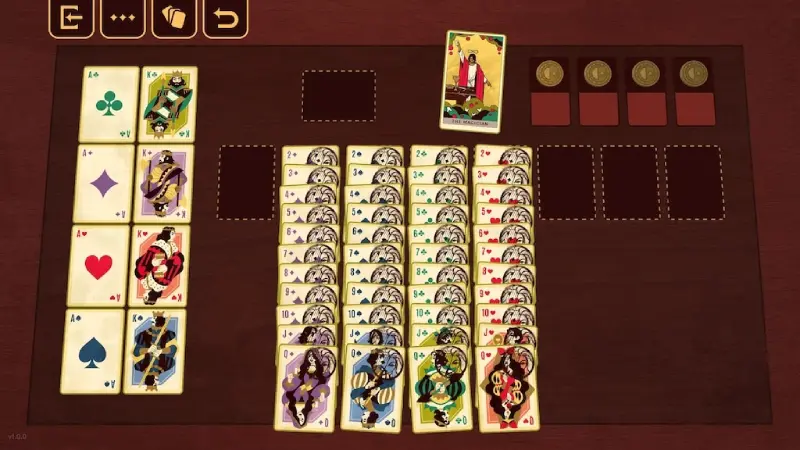 La mecánica base es el Solitario clásico, pero con un giro fundamental: las reglas están ocultas.