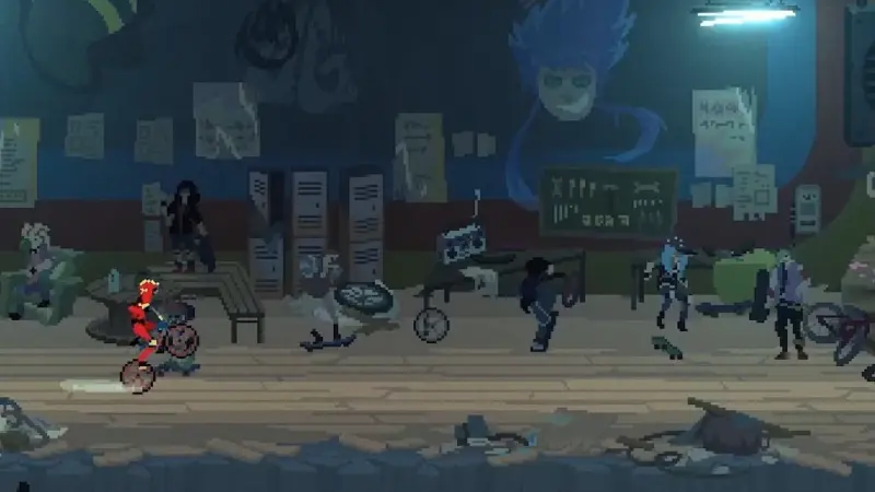 - Efectos: Los sonidos de los disparos, los derrapes de la bicicleta y el «splatter» de los enemigos al explotar tienen un peso auditivo muy satisfactorio que redondea la atmósfera.