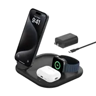 Una solución todo-en-uno para cargar iPhone, Apple Watch y AirPods desde una base elegante y portátil.