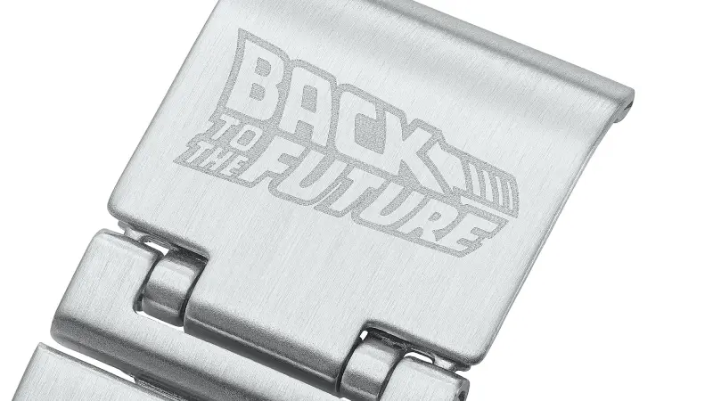 • El Corazón del Viaje: El reverso del reloj incluye un grabado impresionante del Condensador de Flujo, el componente esencial que permite los viajes en el tiempo.