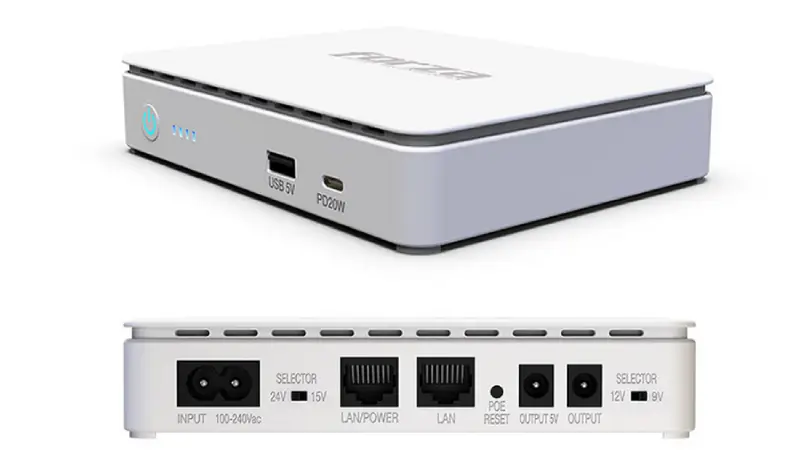 Esta UPS —que también funciona como banco de energía avanzado— está diseñada para dar respaldo inmediato a módems, routers, cámaras IP, teléfonos VoIP y hasta dispositivos IoT. Con 35W de capacidad y una batería interna de 10.400 mAh, puede alimentar varios dispositivos al mismo tiempo sin perder estabilidad.