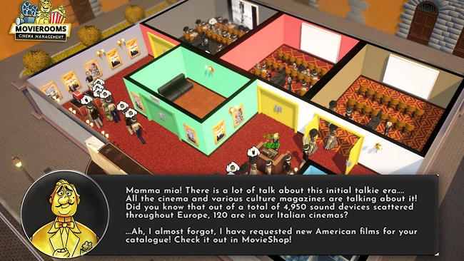- Gestión de Personal y Diseño: Desde proyeccionistas hasta personal de limpieza. Podrás diseñar cada rincón de tu cine y decorar los espacios para crear una marca única.